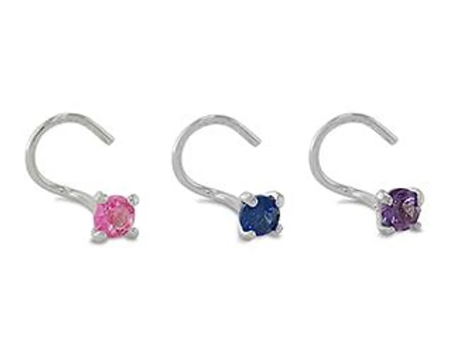 14K White Gold Three Pieces Created Sapphire Nose Stud Set
