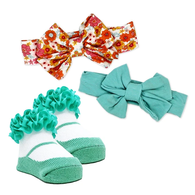 Baby Mode Signature 3 Piece Headband & Sock Set: Aqua Floral