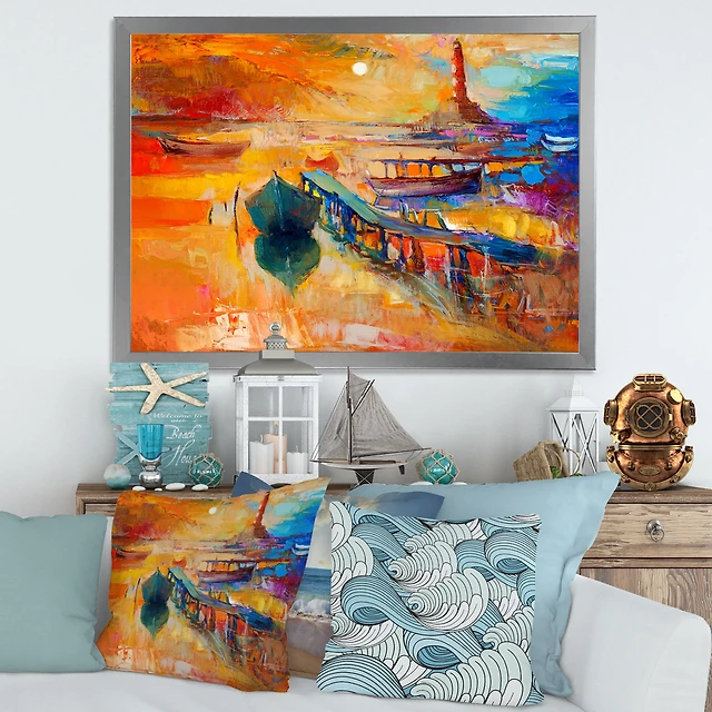 Brilliant Sunrise over Sea Pier Canvas Wall Art