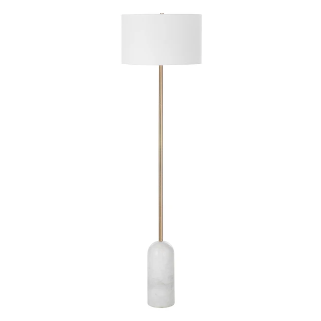 Lozica 62.5" Tall Antique Brushed Brass Floor Lamp with Drum Linen Shade