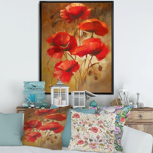 Retro Flowers by The Sea Side Canvas Wall Art - 3 Panels