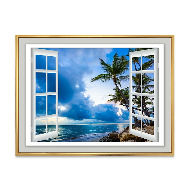 Wonderful Sunrise on Black Ocean Canvas Wall Art Panels
