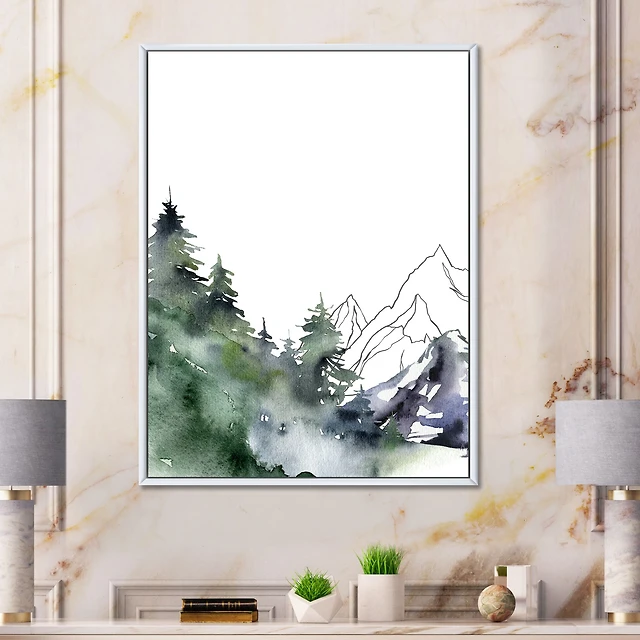Winter Dark Blue Mountain Landscape with Trees III Canvas Wall Art Print