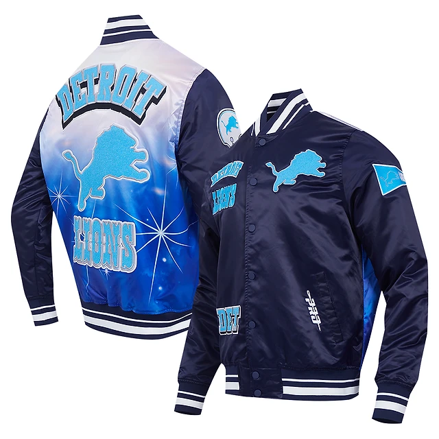 Men's Pro Standard Navy Detroit Lions Sublimated Satin Full-Snap Jacket