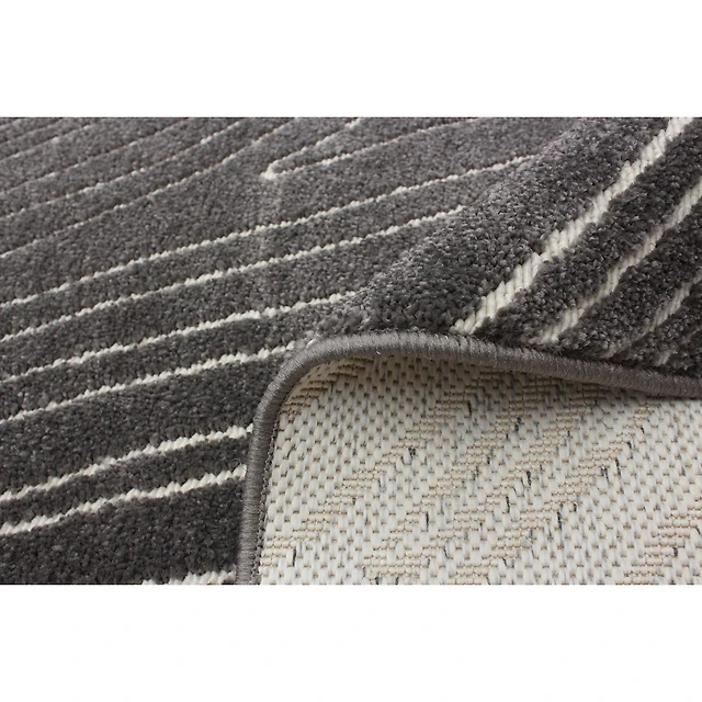 Accent Rug, Irregular Design Stripe with Fringe - Natural / Grey