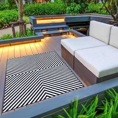 Semi Circle Motif Accent Rug - Natural/Black