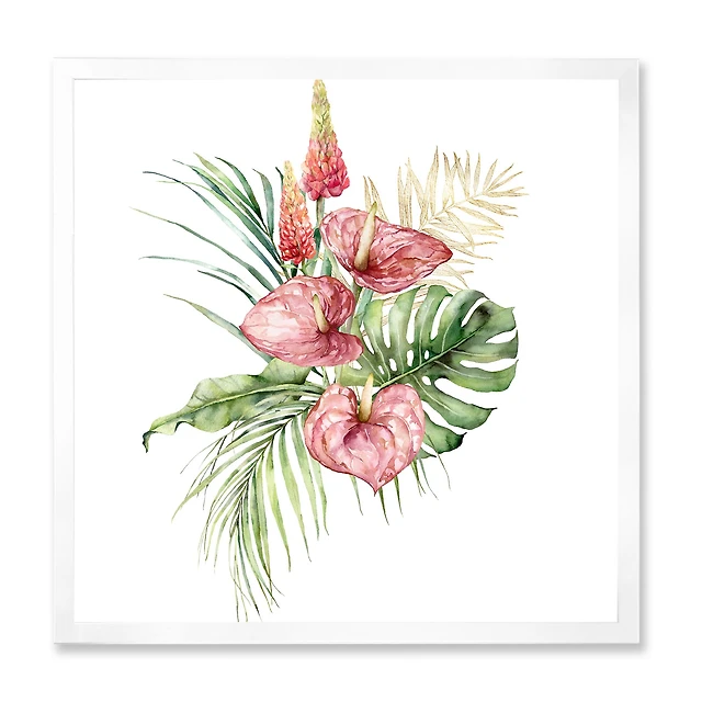 Tropical Bouquet with Anthurium Lupine & Leaves I Canvas Wall Art Print Panels