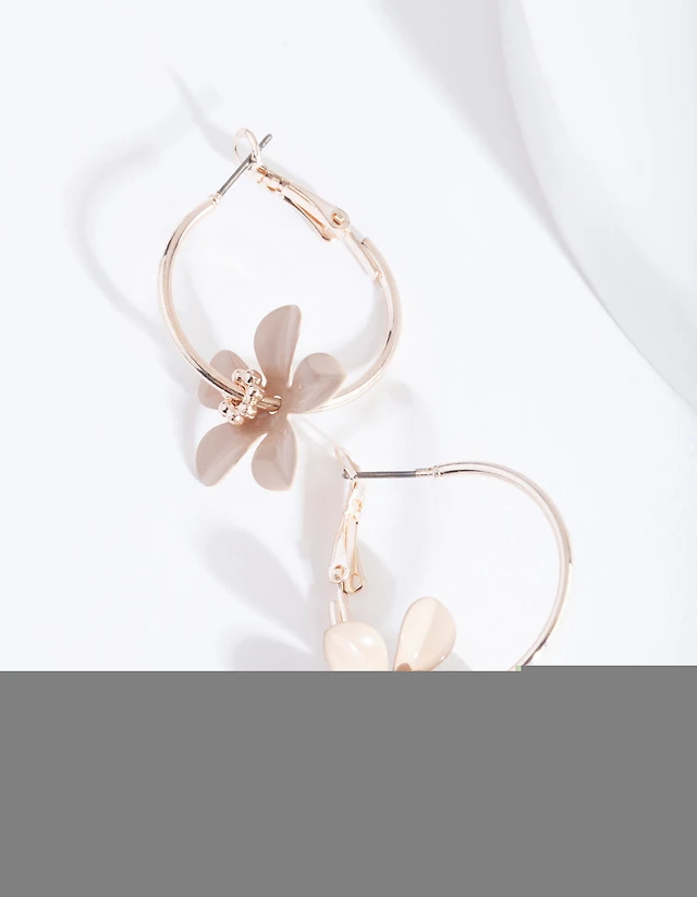 Gold Blue Delicate Flower Teardrop Hoop Earrings