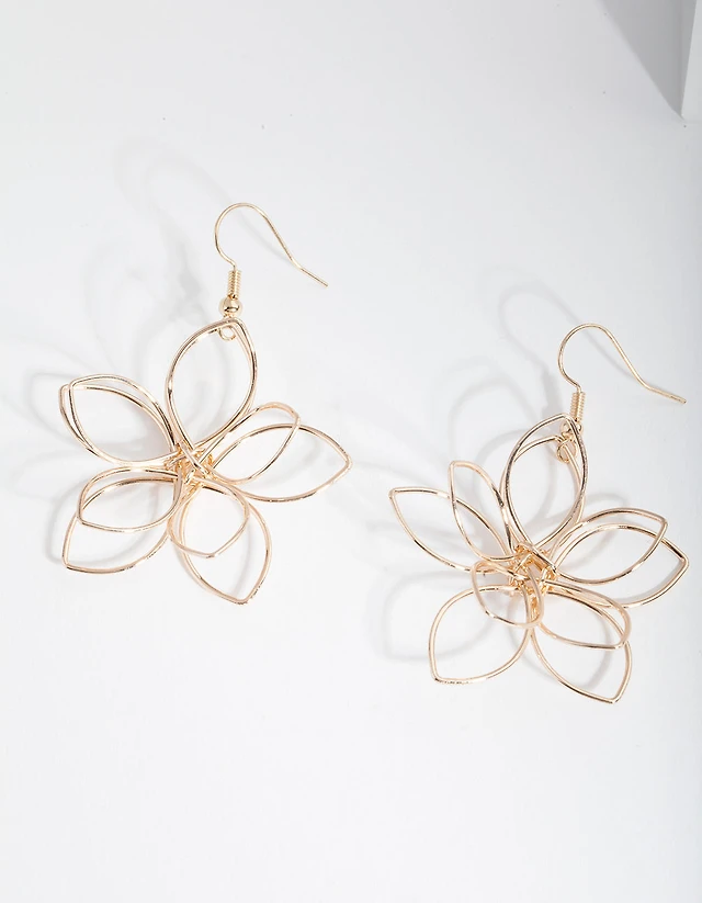 Gold Geometric Cubic Zirconia Stone Flower Hoops