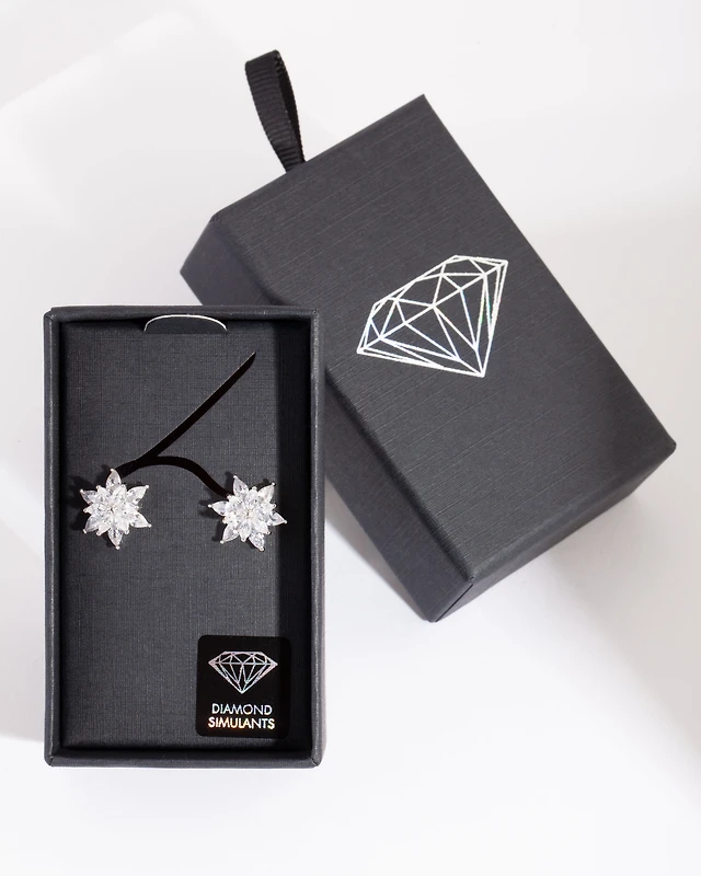 Silver Diamond Simulant Flower Necklace & Earrings Set