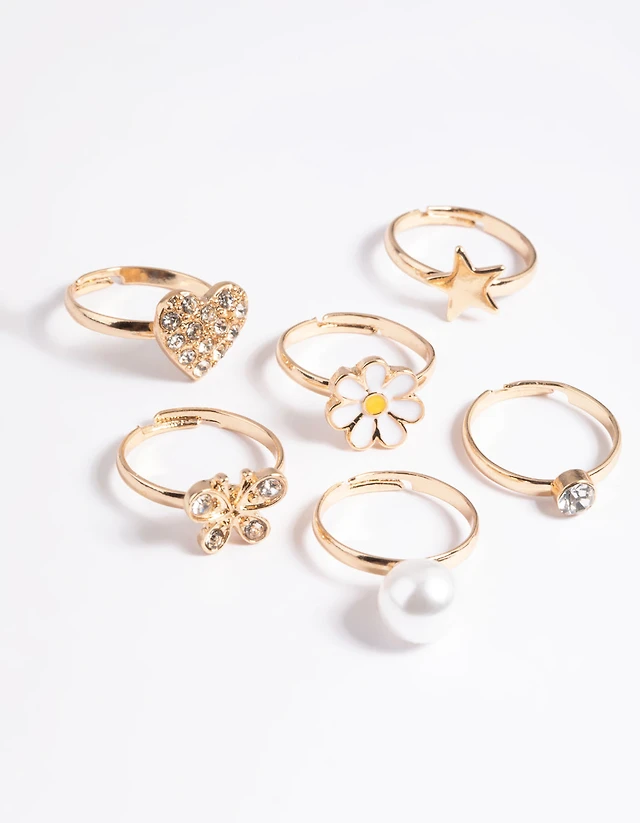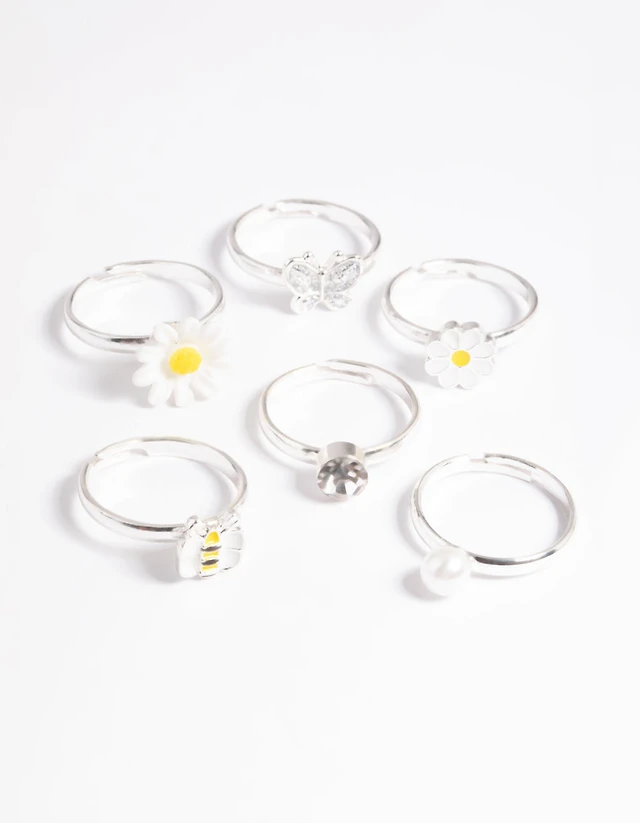 Kids Diamante & Daisy Ring 6-Pack