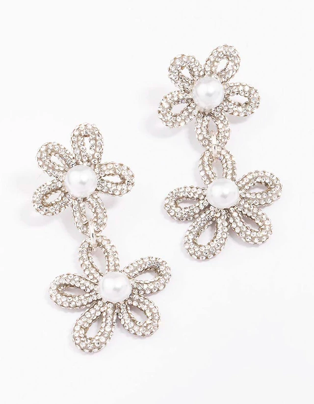 Gold Diamante Flower & Pearl Earring 8-Pack