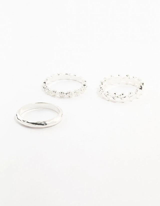 Silver Flower Vine Rings 3-Pack