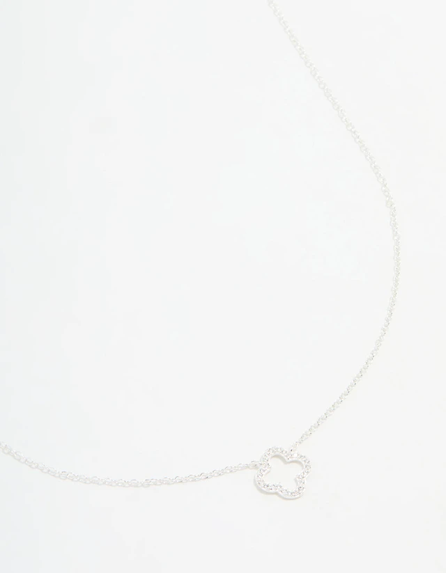Silver Plated Diamante Outline Pendant Flower Necklace