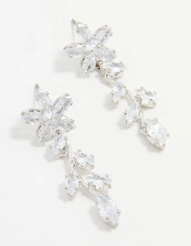 Silver Cubic Zirconia Flower Trail Drop Earrings