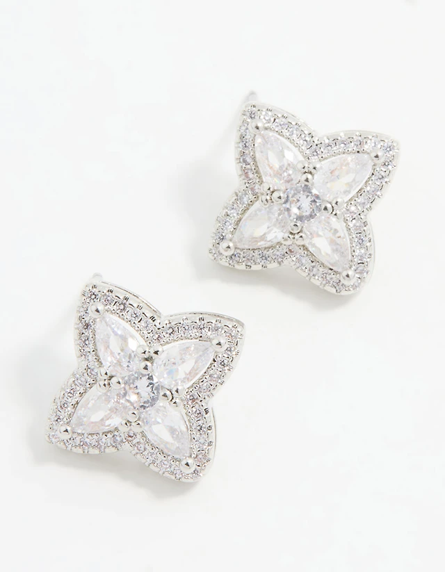 Sterling Silver Cubic Zirconia Flower Stud Earrings