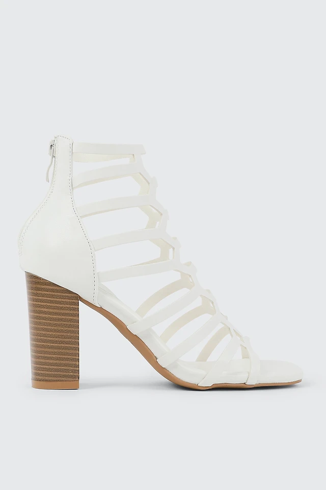Ardene High Heel Cage Sandals in White | Size | Faux Leather | Eco-Conscious