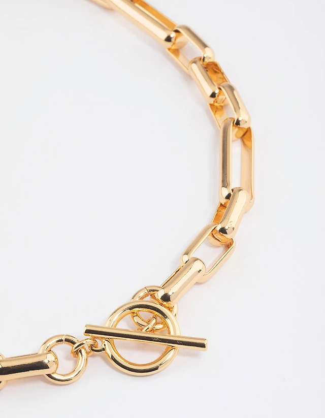 Waterproof Gold Plated Stainless Steel Heart FOB Flat Chain Necklace