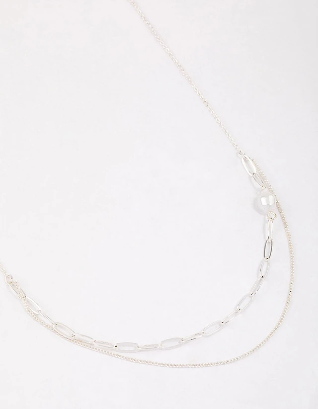 Silver Double Row Pearl Chain Necklace & Polishing Set
