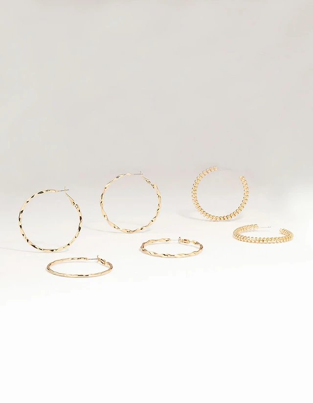 Gold Textured & Sleek Hoop Earrings 3-Pack
