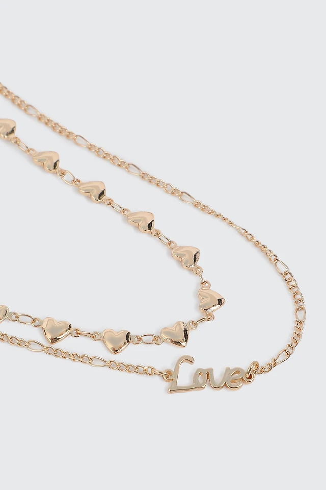 Ardene Chain Necklace with Floral Heart Pendant in Gold