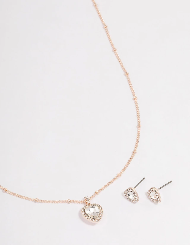 Rose Gold Plated Sterling Silver Cubic Zirconia Half Paved Heart Necklace