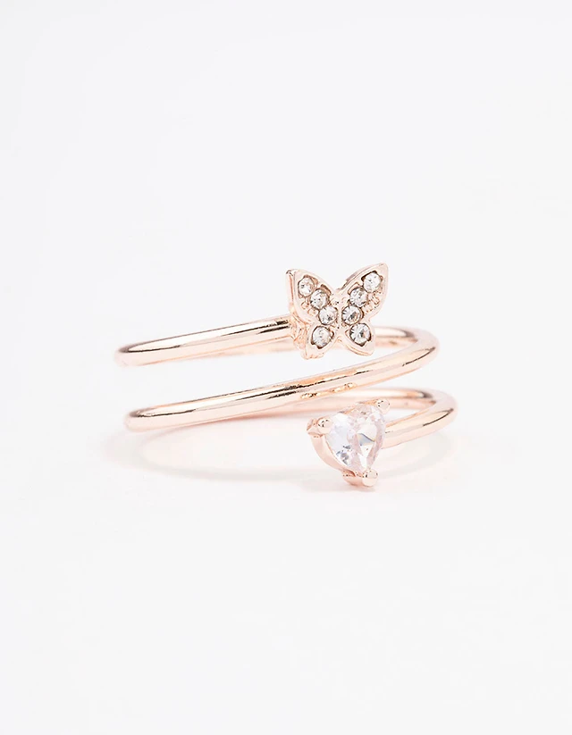 Rose Gold Plated Heart Butterfly Wrapped Ring
