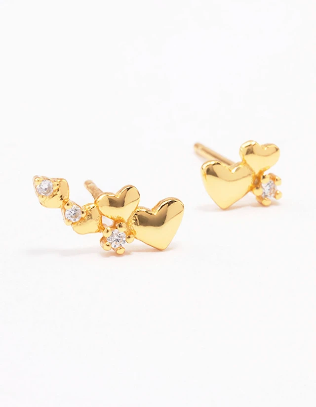 Gold Plated Sterling Silver Mini Cubic Zirconia Heart Huggie Earrings