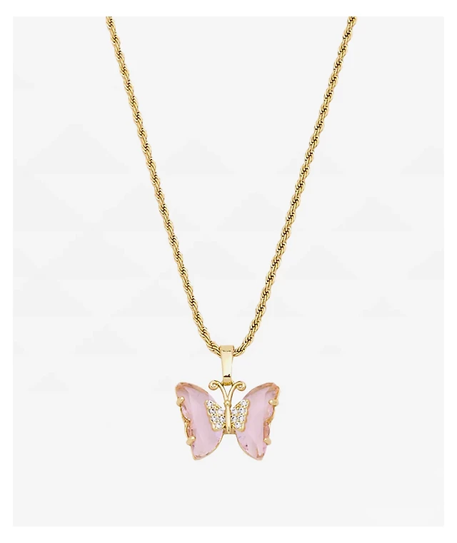 Saint Midas Love Quartz Gold 10" Butterfly Necklace