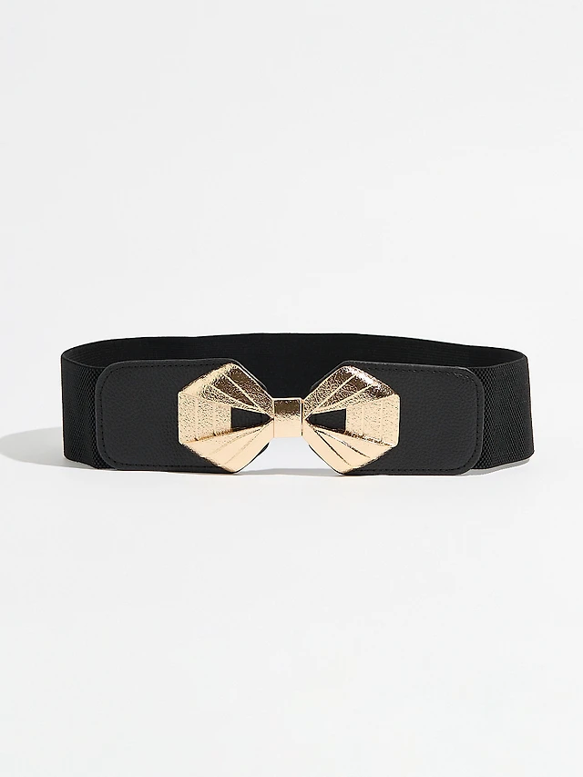 Black Stretch Belt with Gold Bow Buckle