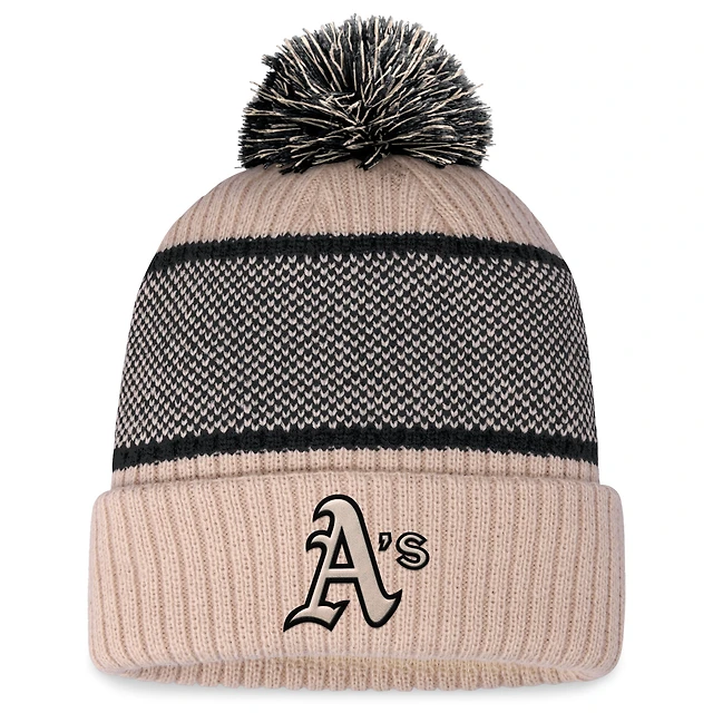Women's '47 White/Green Athletics Ashfield Cuffed Knit Hat with Pom