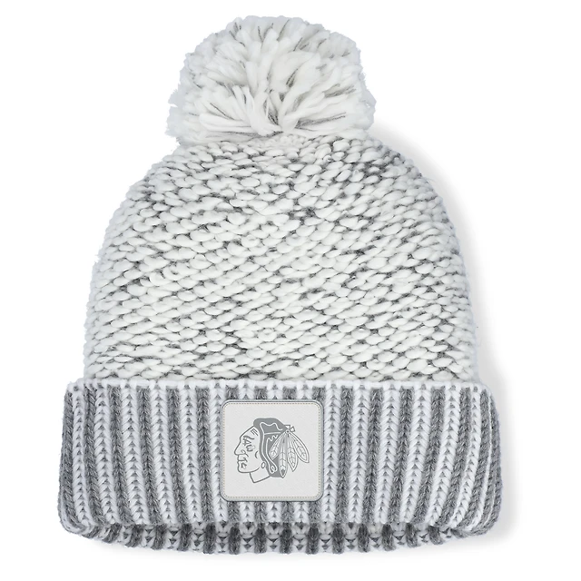 Women's Fanatics White/Gray Chicago Blackhawks Fundamental Mist Cuffed Knit Hat with Pom