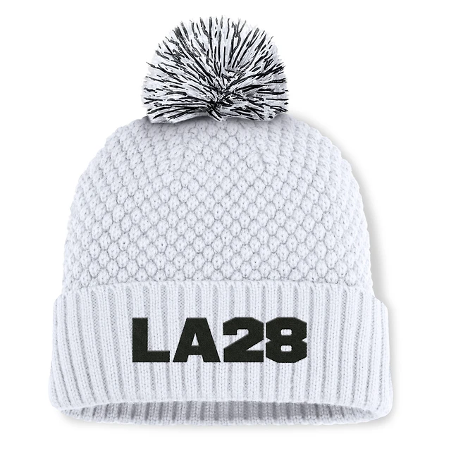 Women's Fanatics White LA28 Summer Olympics Bubble Cuffed Knit Hat with Pom