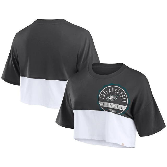 Women's Fanatics Black/White Philadelphia Eagles Boxy Color Split Cropped T-Shirt