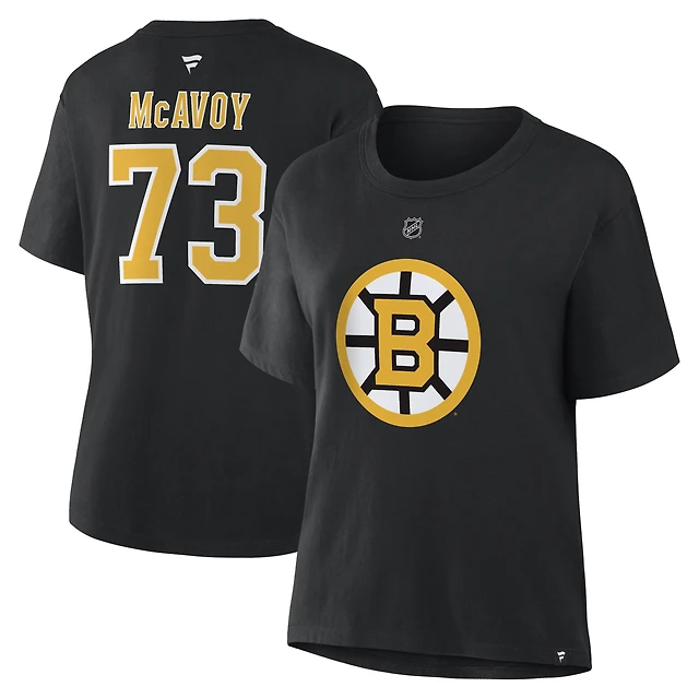 Women's Fanatics Charlie McAvoy Black Boston Bruins Authentic Stack Name & Number T-Shirt