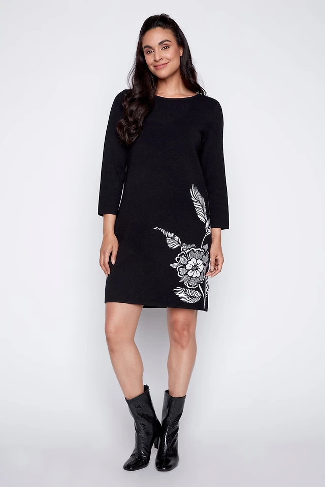 Floral border double knit dress