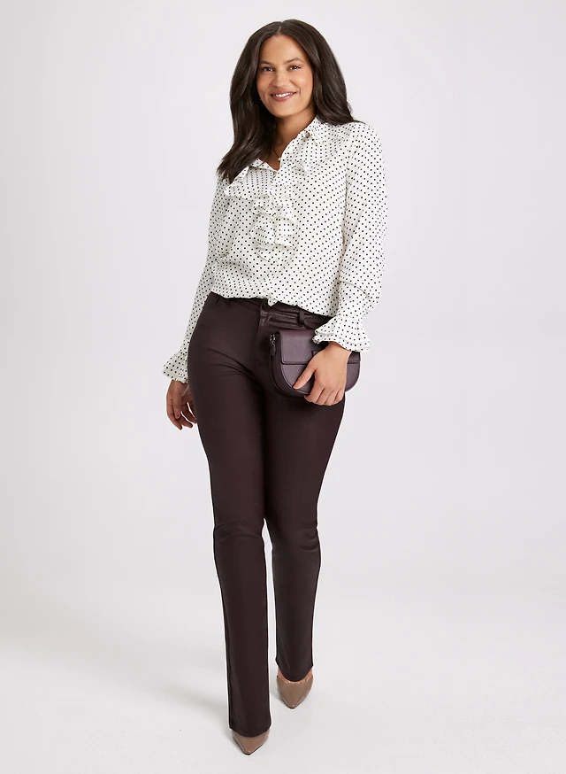 Pleated Button-Up Blouse & Straight Leg Jeans