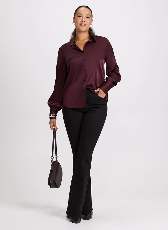 Satin Button Down Blouse & Straight Leg Jeans