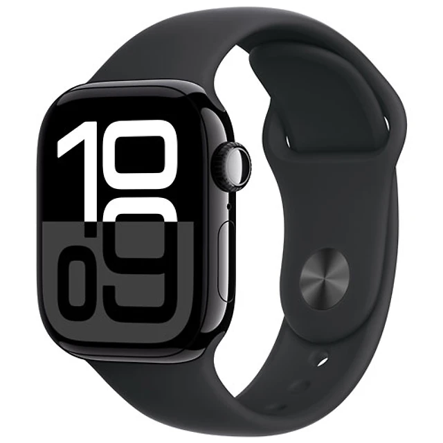 Apple Watch Series 10 (GPS + Cellulaire) avec boîtier de mm en aluminium noir de jais et bracelet sport encre par Virgin Plus