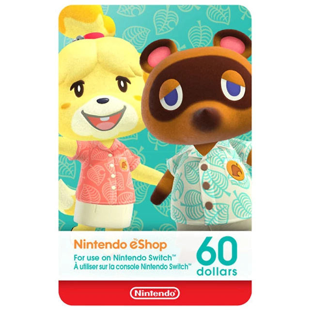 Carte-cadeau de 60 $ pour Nintendo eShop - Téléchargement numérique
