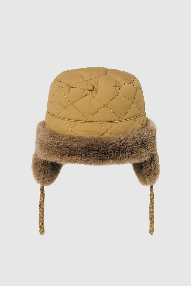 Le chapeau matelassé à losanges doublé de fausse fourrure