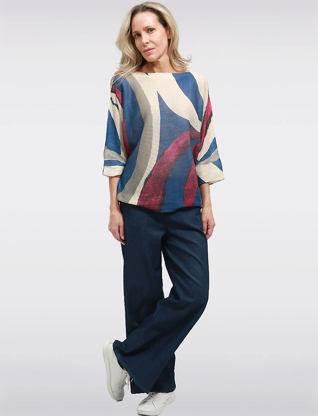 Pull Fin à Manches Dolman et Encolure Large avec Motif Abstrait par Froccella