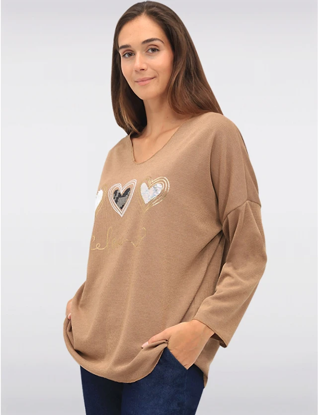 Top Col V Laine Froccella, Détail Cœur – Offres Black Friday