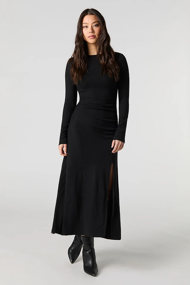 Haut en tricot côtelé à épaule dégagée et manche longue