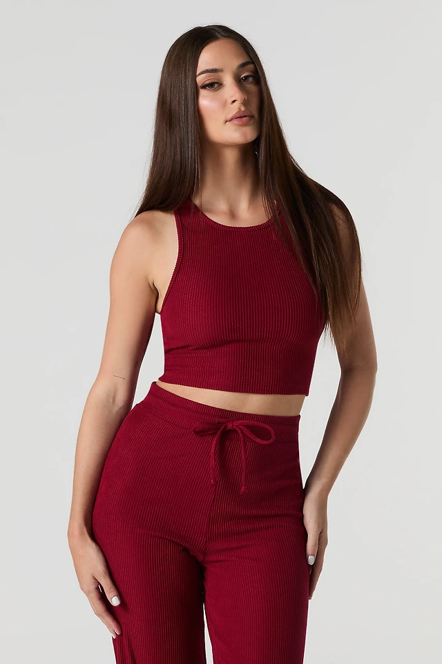 T-shirt côtelé court à encolure en V large