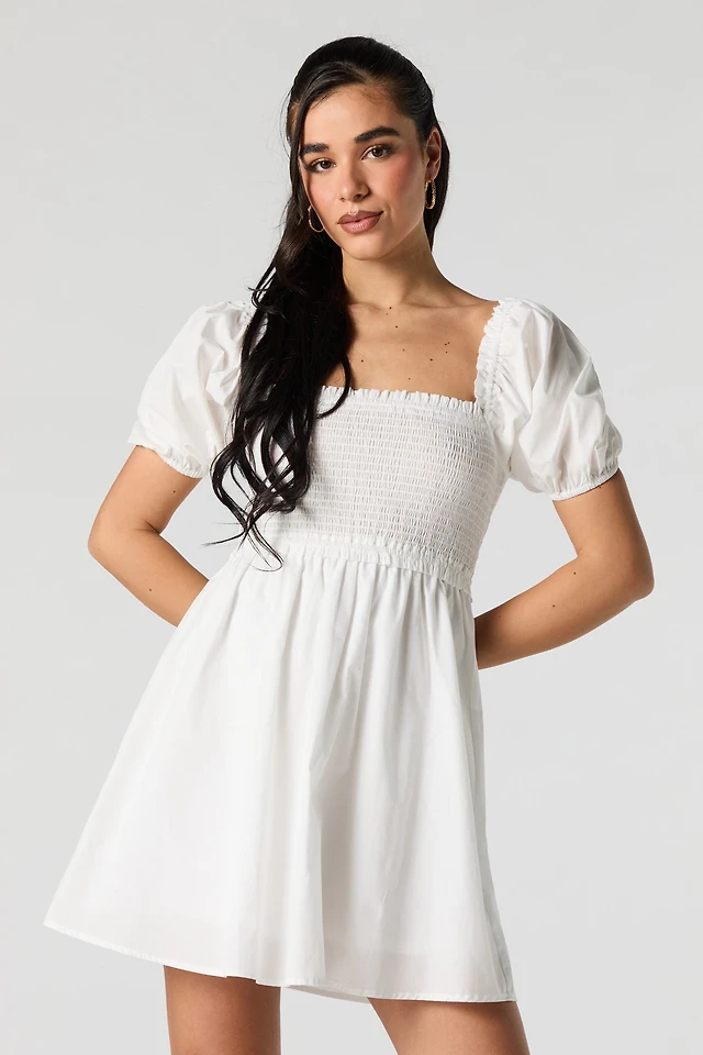 Minirobe ruchée en filet avec manches bouffantes
