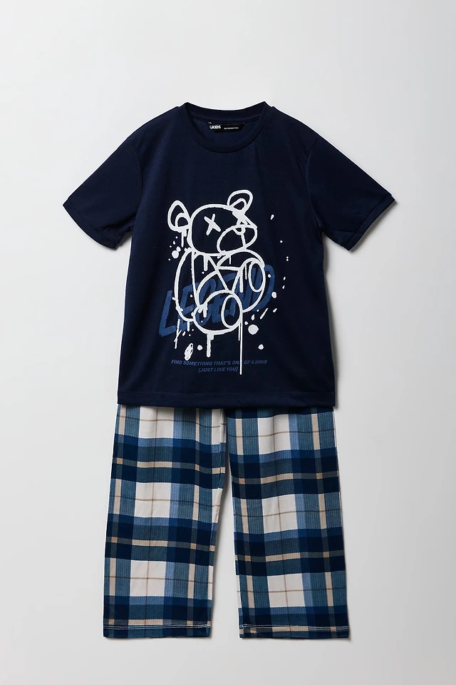Ensemble pyjama avec t-shirt imprimé et short en peluche pour fille
