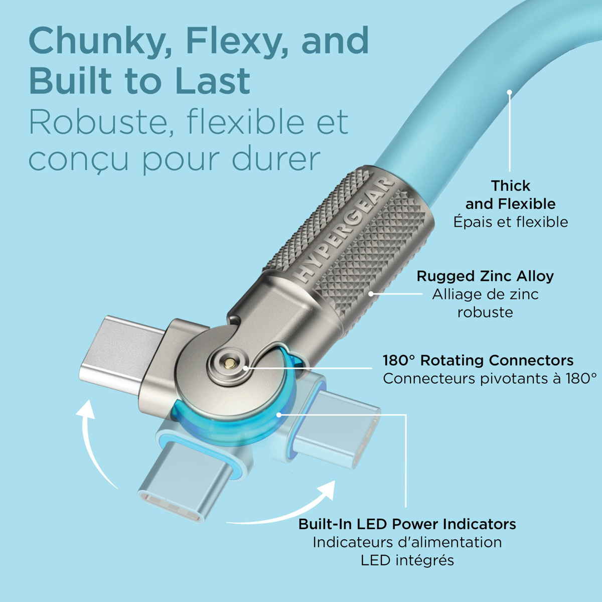 HyperGear 6 ft. 180cm USB-C to USB-C Chunky 180 Rugged Cable w/Rotating Connectors