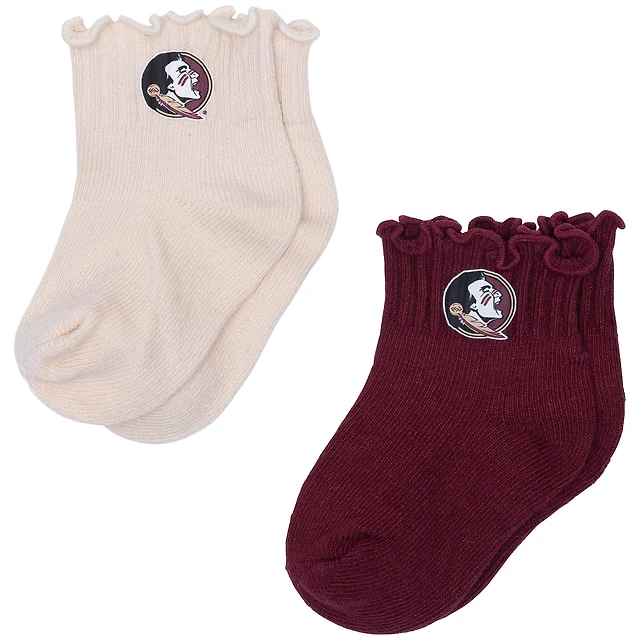 Lot de deux paires de chaussettes ZooZatz crème/grenat Florida State Seminoles à ourlet en laitue pour bébé