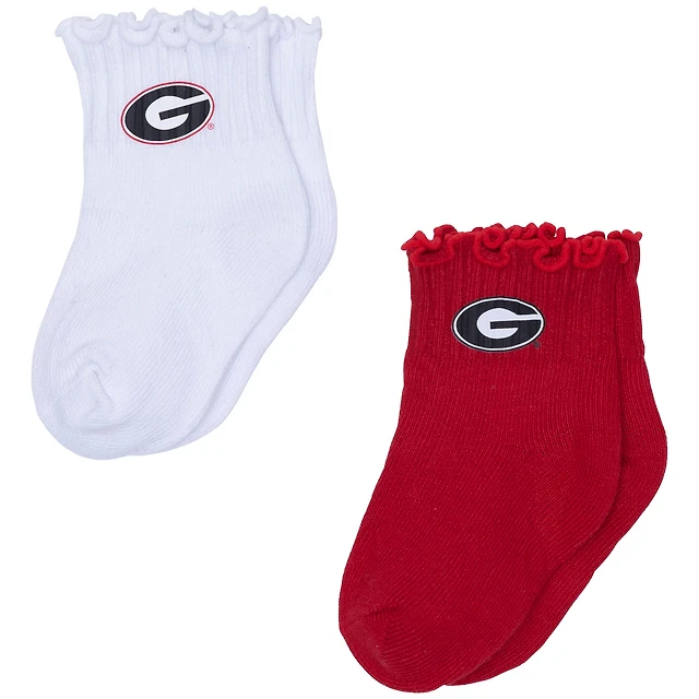 Lot de deux paires de chaussettes blanches/rouges Georgia Bulldogs pour bébé ZooZatz, motif tri-mélange à ourlet ondulé
